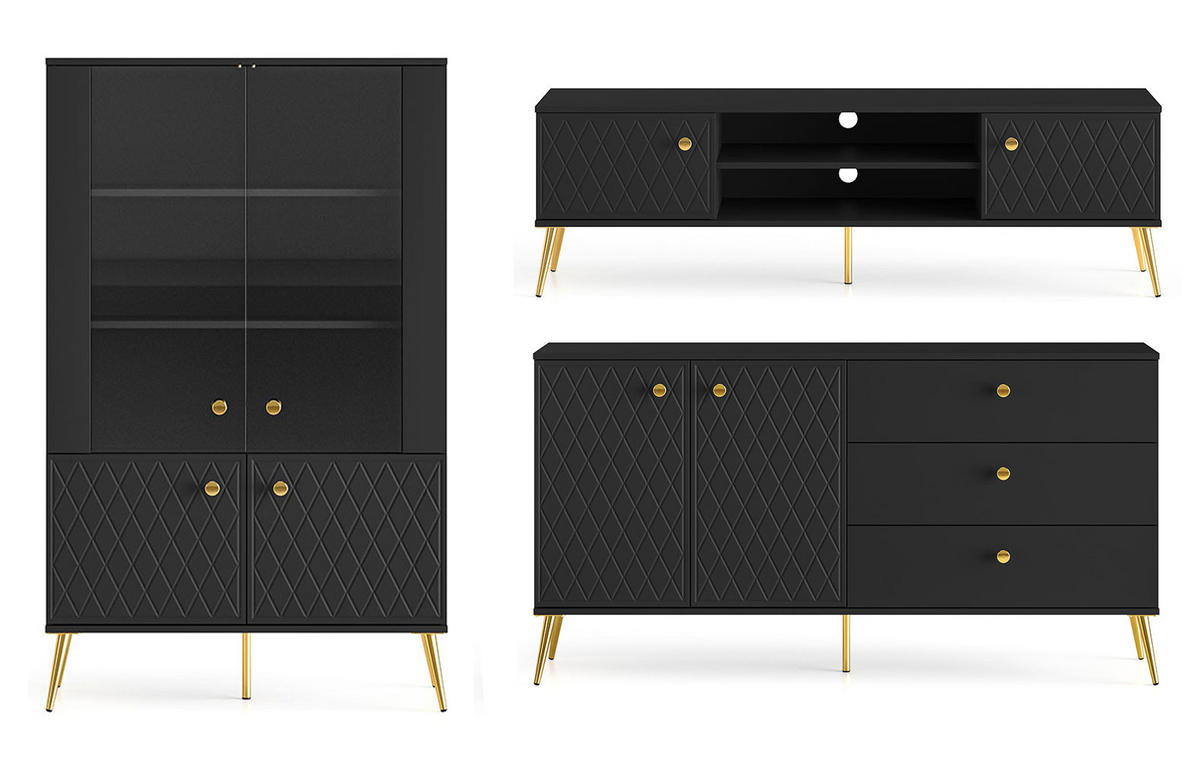 Feldmann-Wohnen WOHNZIMMER-SET Eljot Schwarz Matt / Gold 3-teilig
