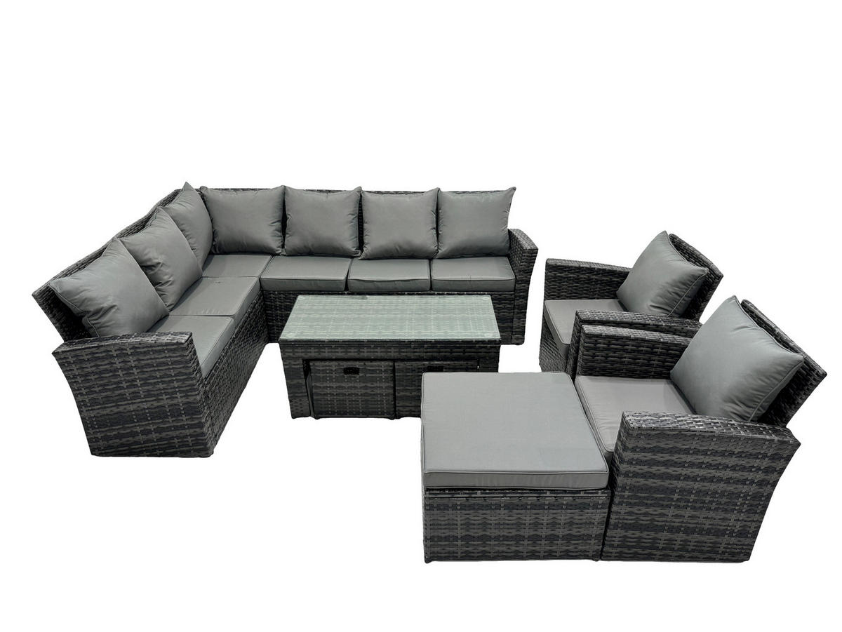 • Materialien: Polyrattan,Stoff,verzinkter Stahl,Schaum,Glas