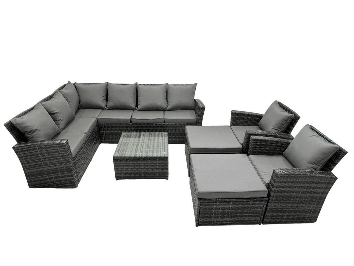 Fimous BALKONMÖBEL-SETS mit Ecksofa,Quadratischer Couchtisch,2 Sesseln,2 Hockern Polyrattan Dunkelgrau 10-Sitzer