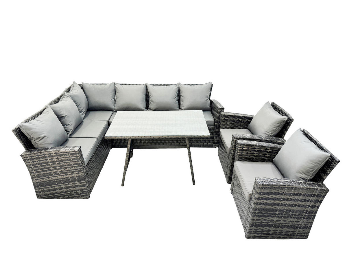 Fimous BALKONMÖBEL-SETS mit Ecksofa,Stuhl,Länglicher Esstisch Polyrattan Dunkelgrau 8-Sitzer