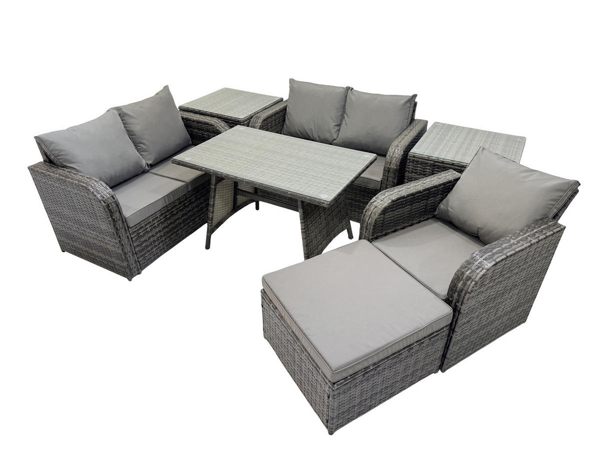 Fimous BALKONSET mit ESSTISCH SOFA Polyrattan Dunkelgrau 6-Sitzer