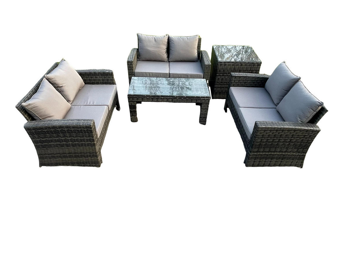 Fimous GARTENGARNITUR Polyrattan Dunkelgrau 6-Sitzer