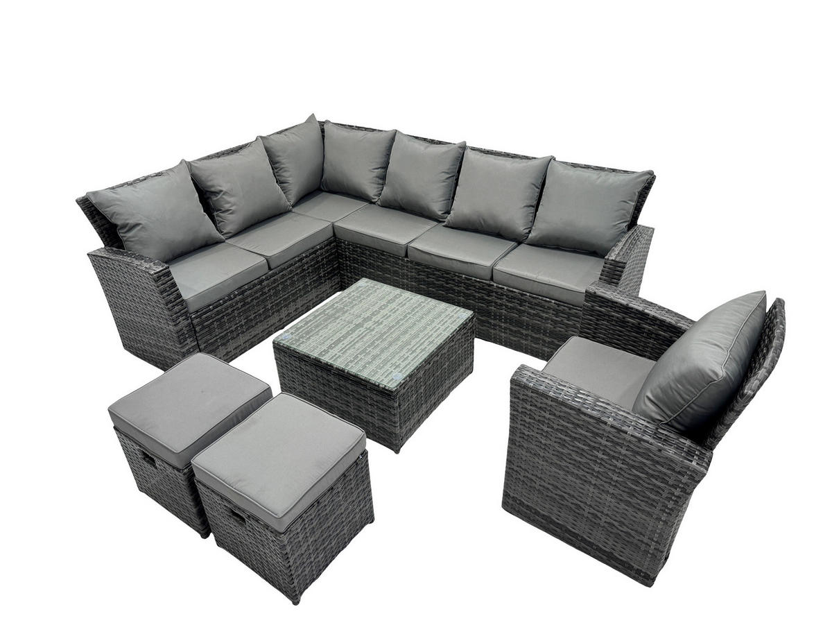 Fimous GARTENLOUNGE mit Ecksofa Polyrattan Dunkelgrau 9-Sitzer