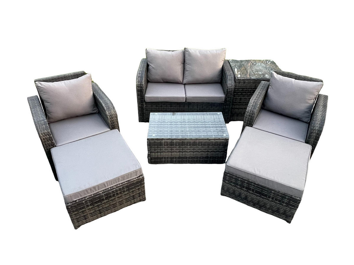 Fimous GARTENLOUNGE-SET Polyrattan Dunkelgrau 6-Sitzer