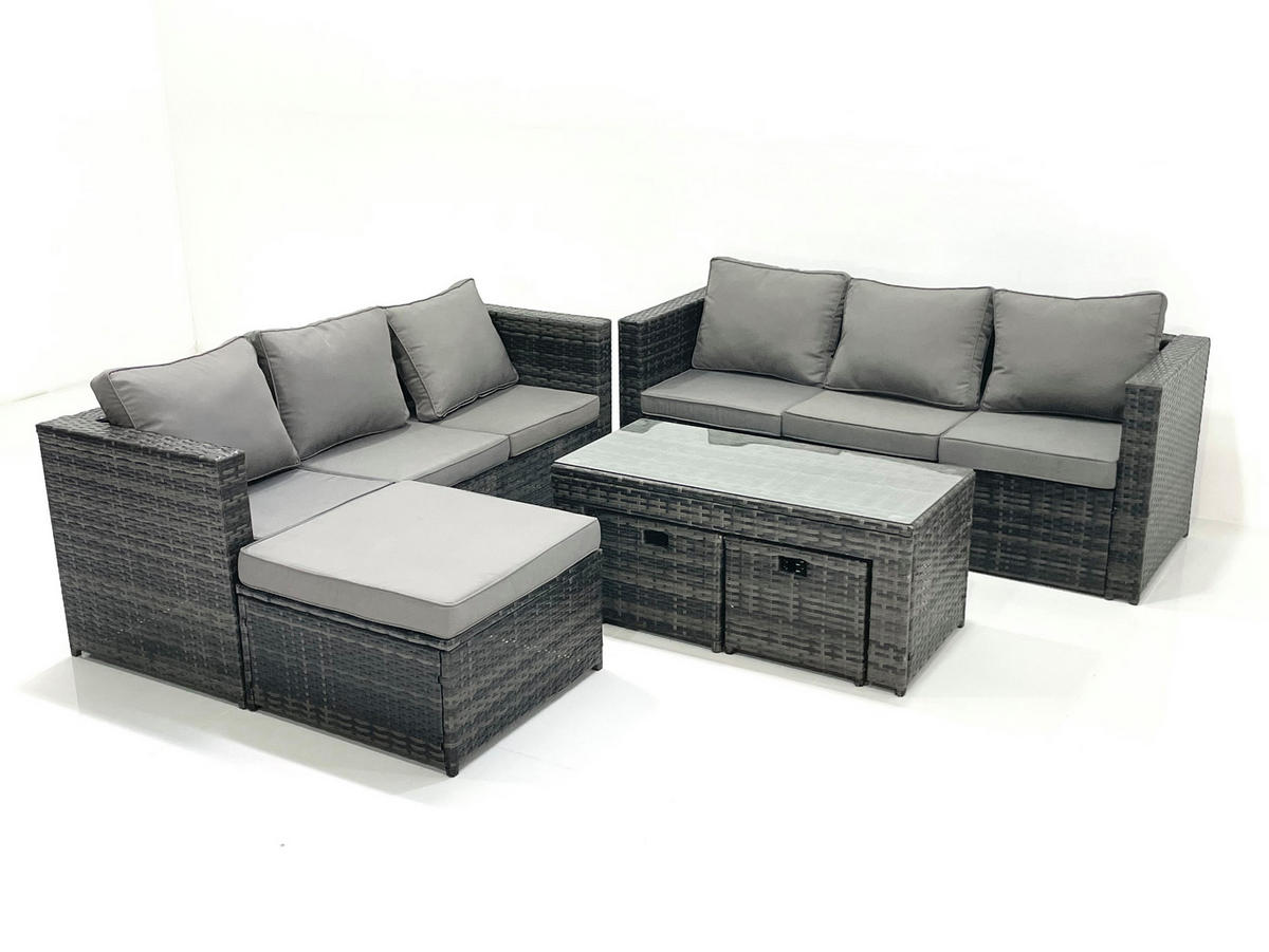 Fimous GARTENMÖBEL COUCHTISCH SET mit Sofa Polyrattan Outdoor 9-Sitzer