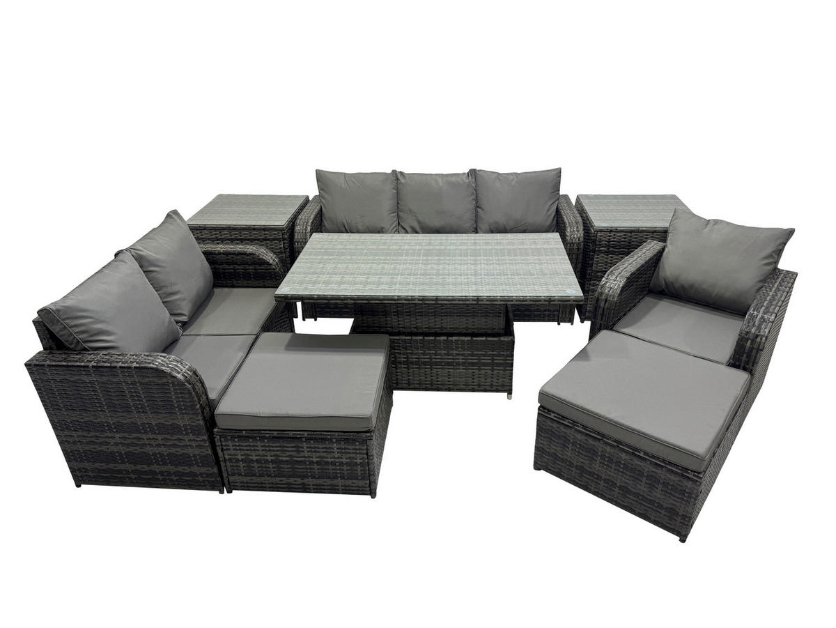 Fimous GARTENMÖBEL SET mit 2 Beistelltisch Höhenverstellbarer Esstisch 8-Sitzer Grau