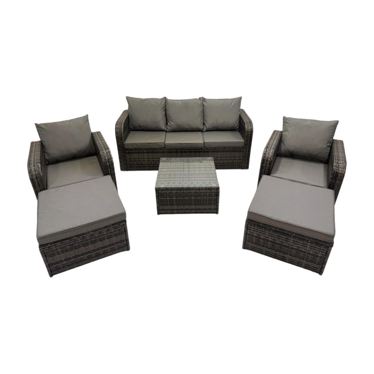 Fimous GARTENMÖBEL SET mit 3-SITZER SOFA Polyrattan Dunkelgrau 7-Sitzer