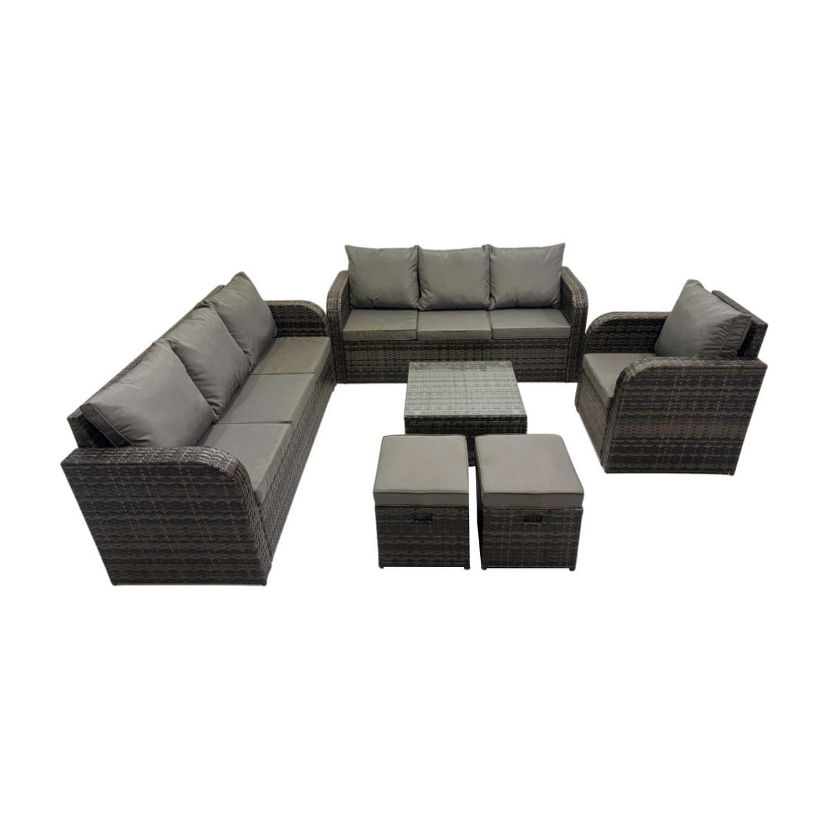 Fimous GARTENMÖBEL SET mit 3-SITZER SOFA Polyrattan Dunkelgrau 9-Sitzer
