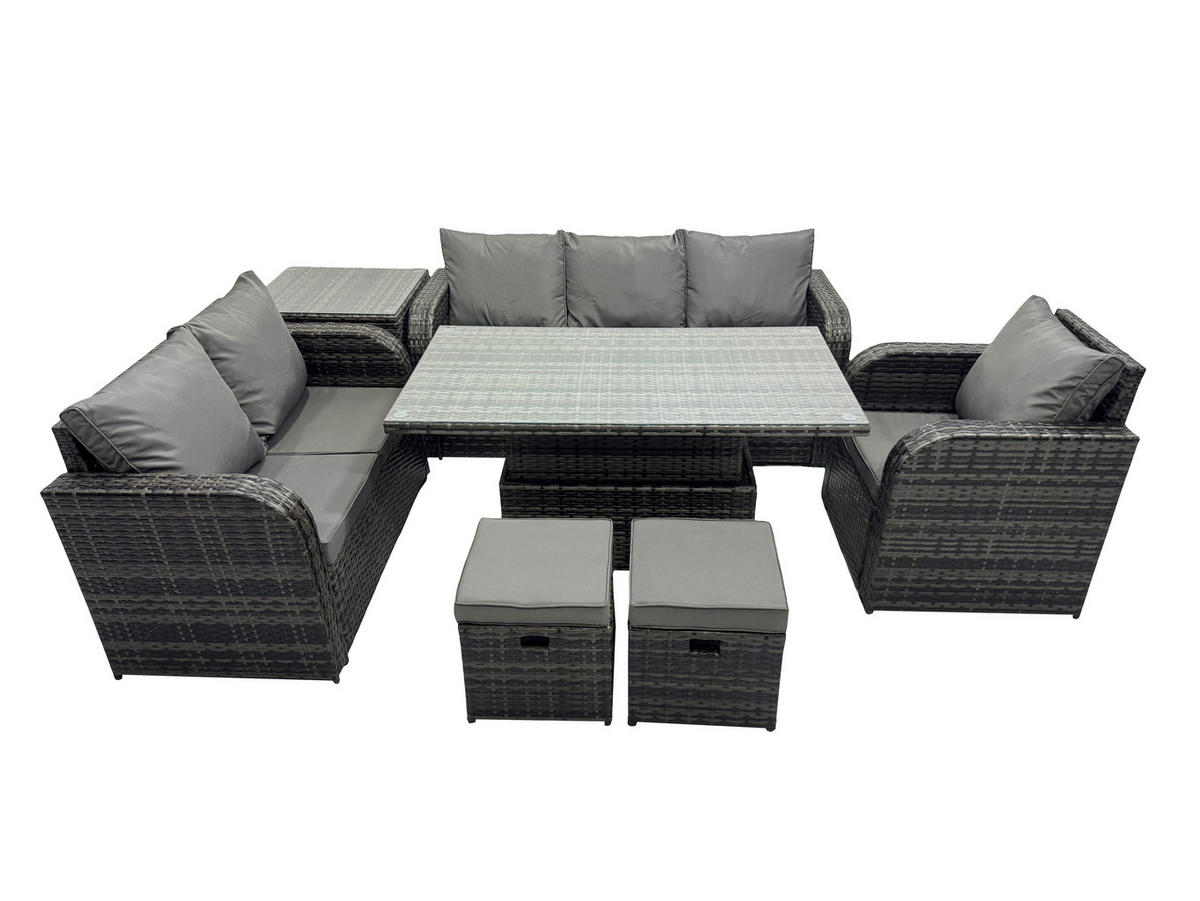 Fimous GARTENMÖBEL SET mit Höhenverstellbarer Esstisch 3-Sitzer Sofa, Stuhl 8-Sitzer Grau