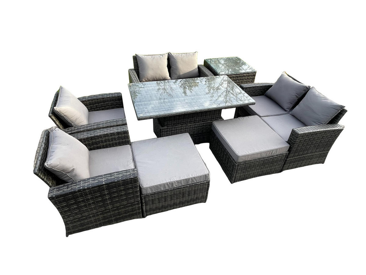 Fimous GARTENMÖBEL SET mit höhenverstellbarer Tisch Polyrattan Dunkelgrau 8-Sitzer