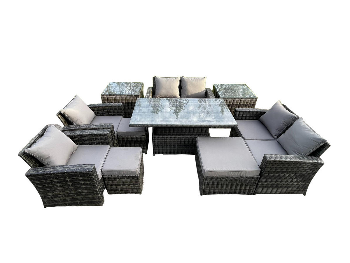 Fimous GARTENMÖBEL SET mit höhenverstellbarer Tisch Polyrattan Dunkelgrau 9-Sitzer