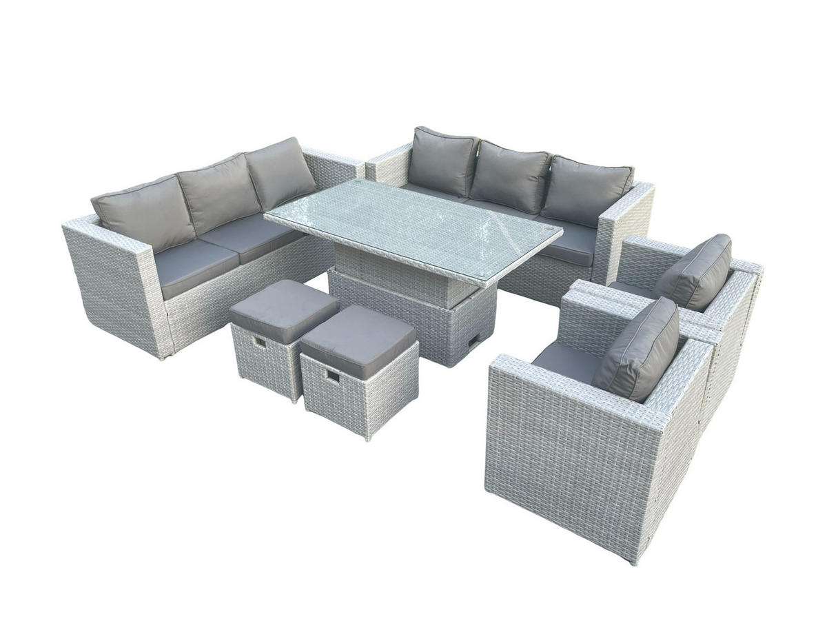 Fimous GARTENMÖBEL SET mit höhenverstellbarer Tisch Polyrattan Helles Grau 10-Sitzer