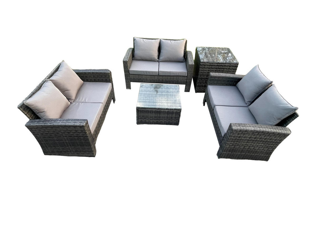 Fimous GARTENMÖBEL-SET mit Kissen Polyrattan Dunkelgrau 6-Sitzer