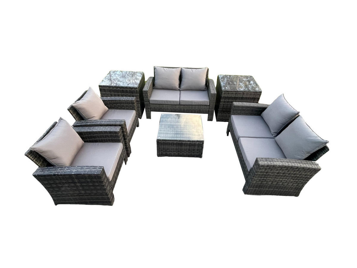 Fimous GARTENMÖBEL-SET mit Kissen Polyrattan Dunkelgrau 6-Sitzer