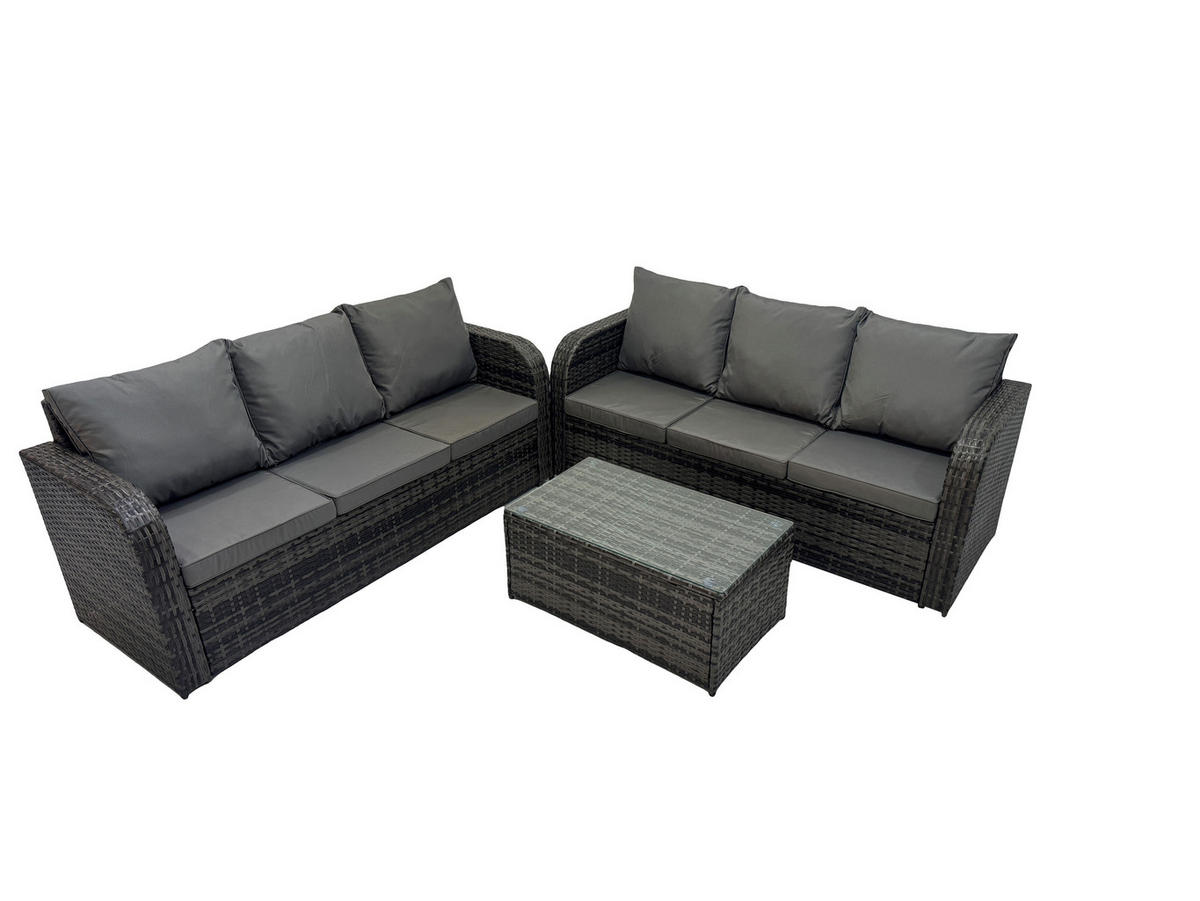 Fimous GARTENMÖBEL-SET mit Kissen Polyrattan Dunkelgrau 6-Sitzer