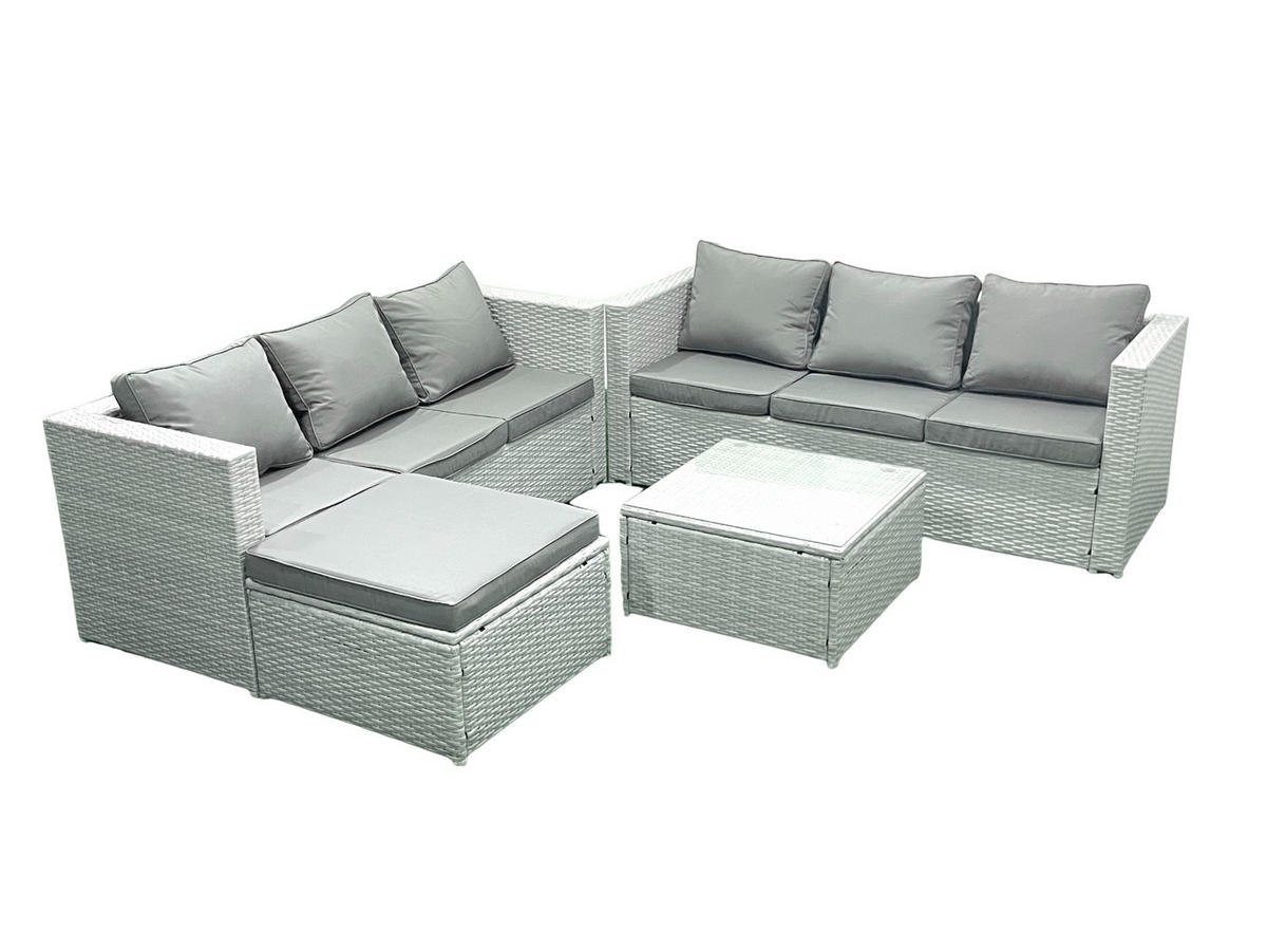 Fimous GARTENMÖBEL-SET mit Kissen Polyrattan Hellgrau-Mix 7-Sitzer