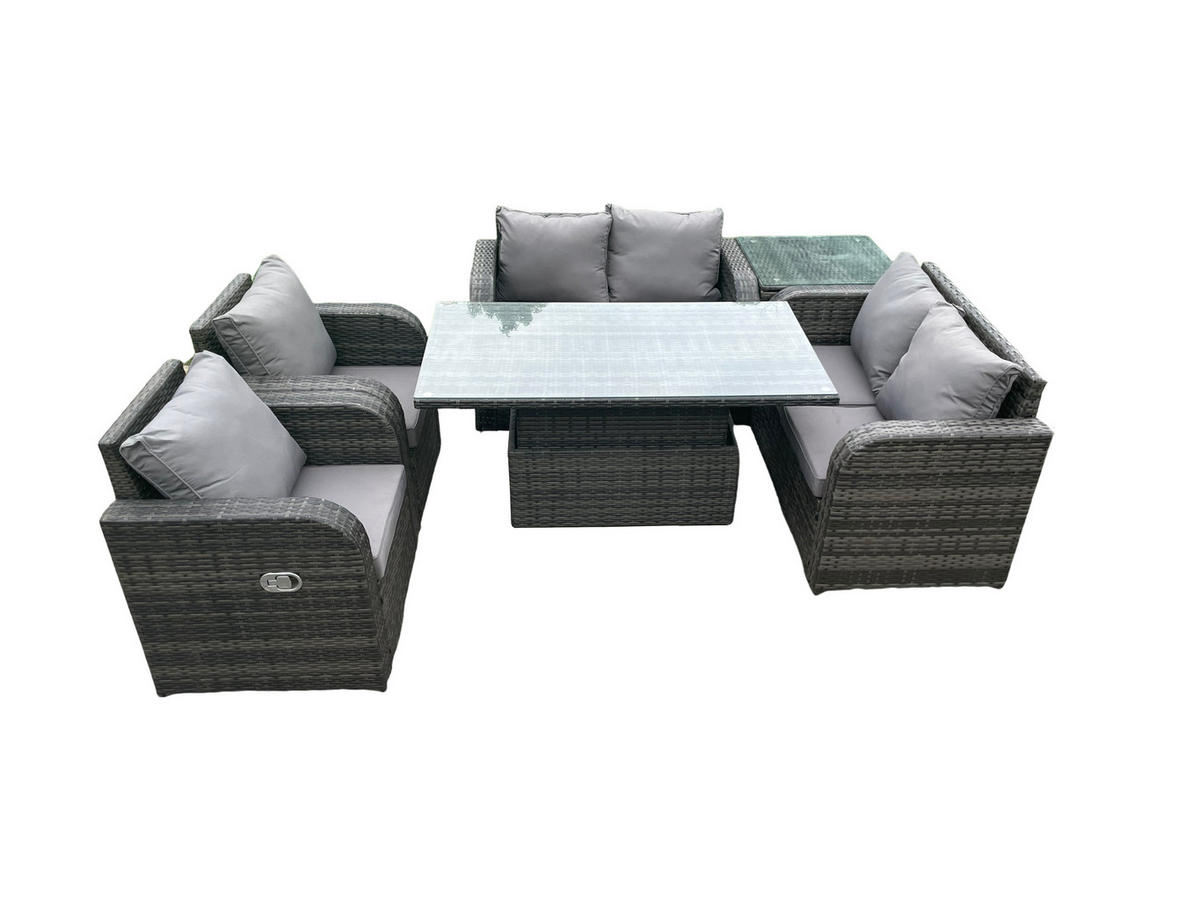 GARTENMÖBEL SET Polyrattan 6-Sitzer - Dunkelgrau/Grau, Glas/Kunststoff - FimousFimous