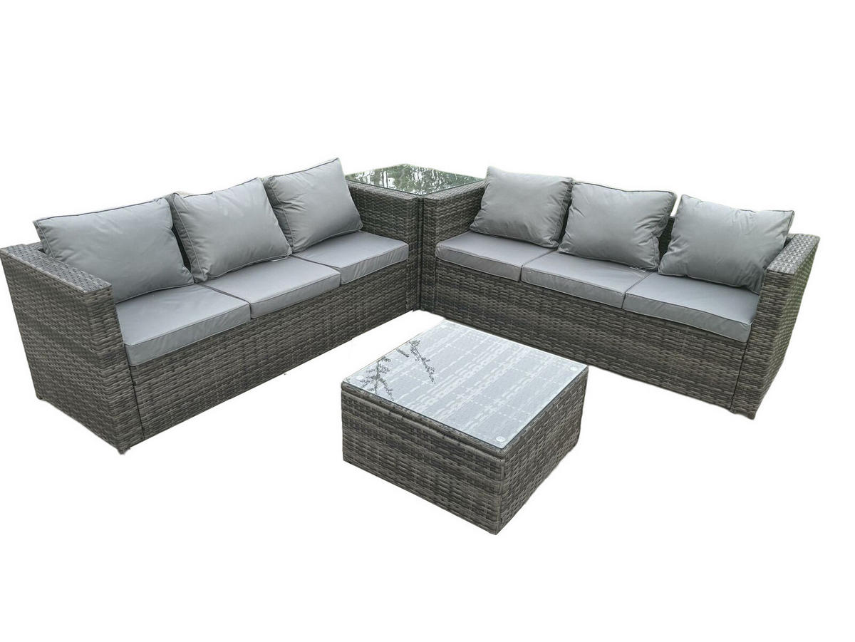 • Materialien: Polyrattan,Stoff,verzinkter Stahl,Schaum,Glas