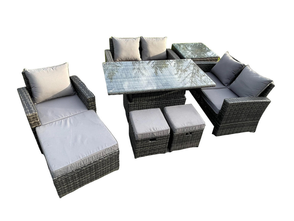 • Materialien: Polyrattan,Stoff,verzinkter Stahl,Schaum,Glas