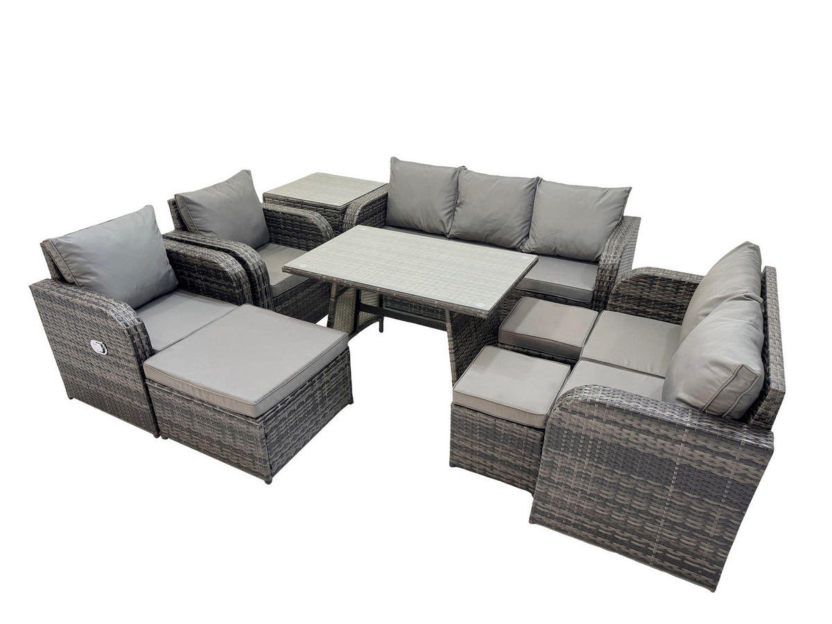 Fimous GARTENMÖBEL SET Polyrattan Dunkelgrau 10-Sitzer