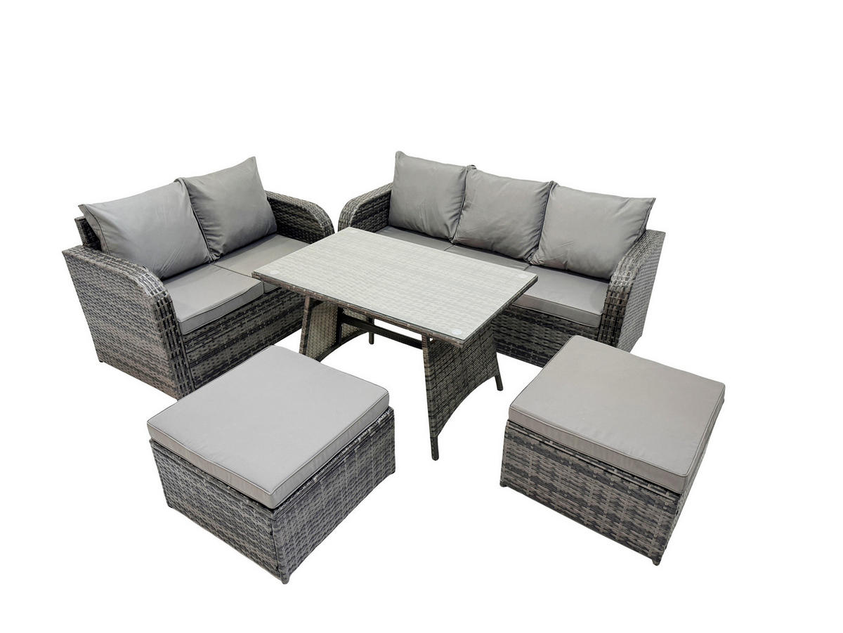 Fimous GARTENMÖBEL SET Polyrattan Dunkelgrau 7-Sitzer