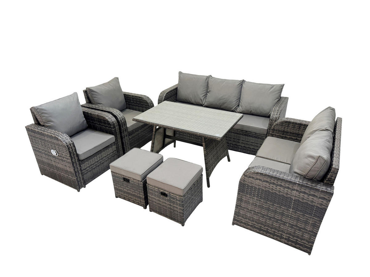 • Materialien:Polyrattan,Stoff,verzinkter Stahl,Schaum,Glas