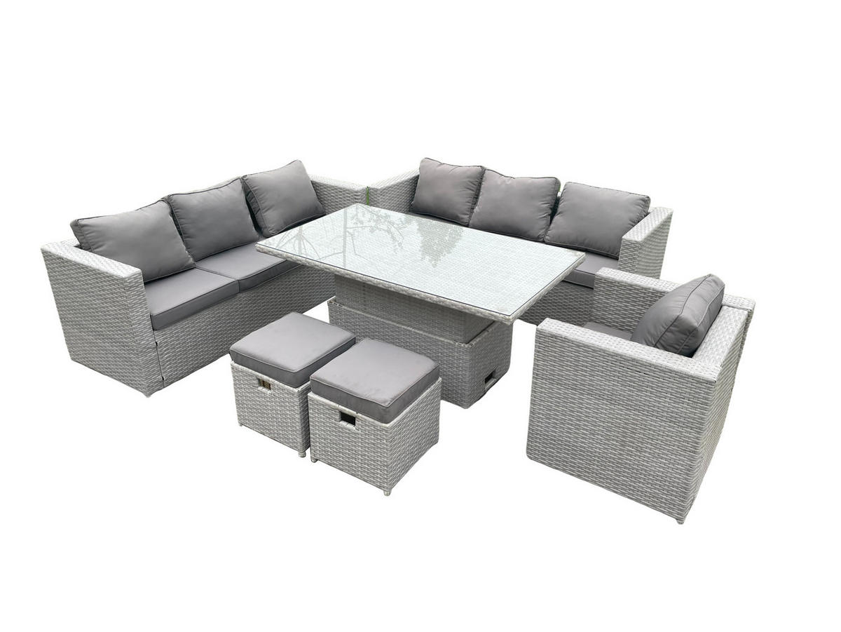 Fimous GARTENMÖBEL SET Polyrattan Helles Grau 9-Sitzer