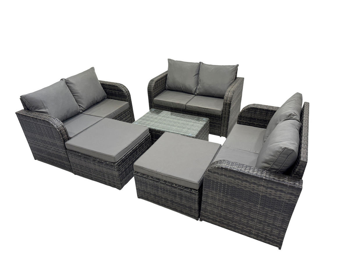 Fimous GARTENMÖBELGARNITUR mit KISSEN Polyrattan Dunkelgrau 8-Sitzer