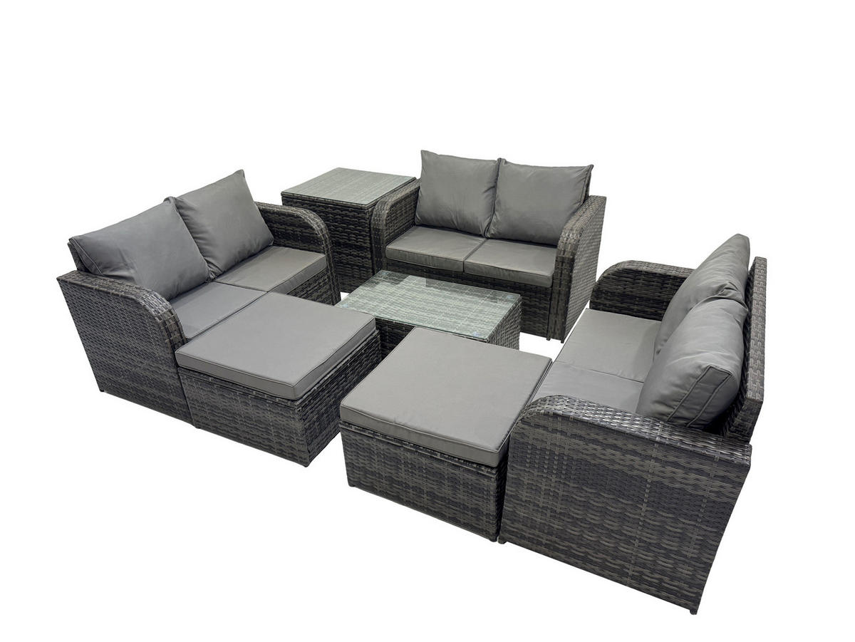 Fimous GARTENMÖBELGARNITUR mit KISSEN Polyrattan Dunkelgrau 8-Sitzer