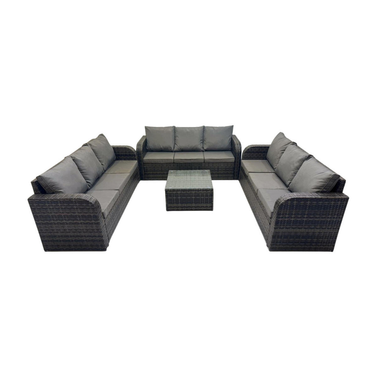 Fimous GARTENMÖBELGARNITUR mit KISSEN Polyrattan Dunkelgrau 9-Sitzer