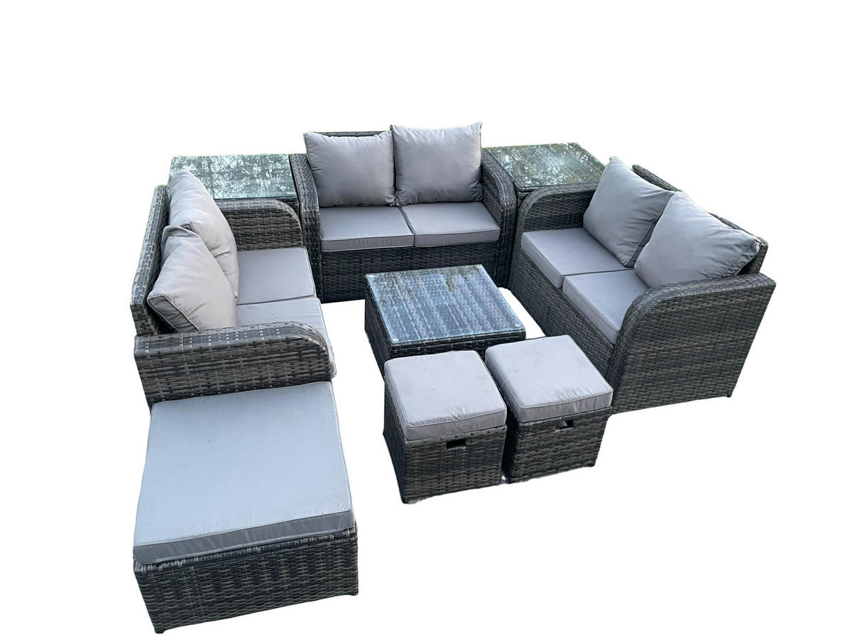 Fimous GARTENMÖBELGARNITUR Polyrattan Dunkelgrau 9-Sitzer