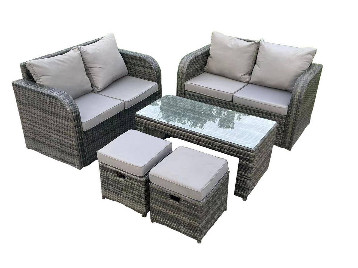 Fimous GARTENMÖBELSET mit 2 kleinen Hockern Polyrattan 6-Sitzer
