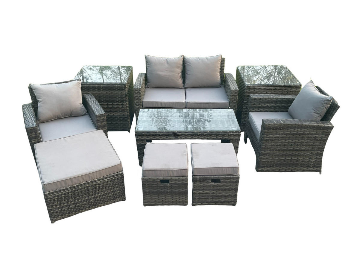 Fimous GARTENMÖBELSET mit 3 Hockern Polyrattan Dunkelgrau Gemischt