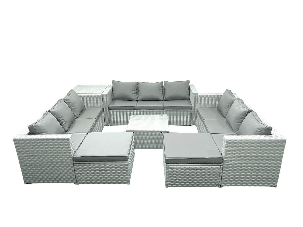 Fimous GARTENMÖBELSET mit 3-SITZER SOFA,COUCHTISCH Polyrattan Hellgrau-Mix 11-Sitzer