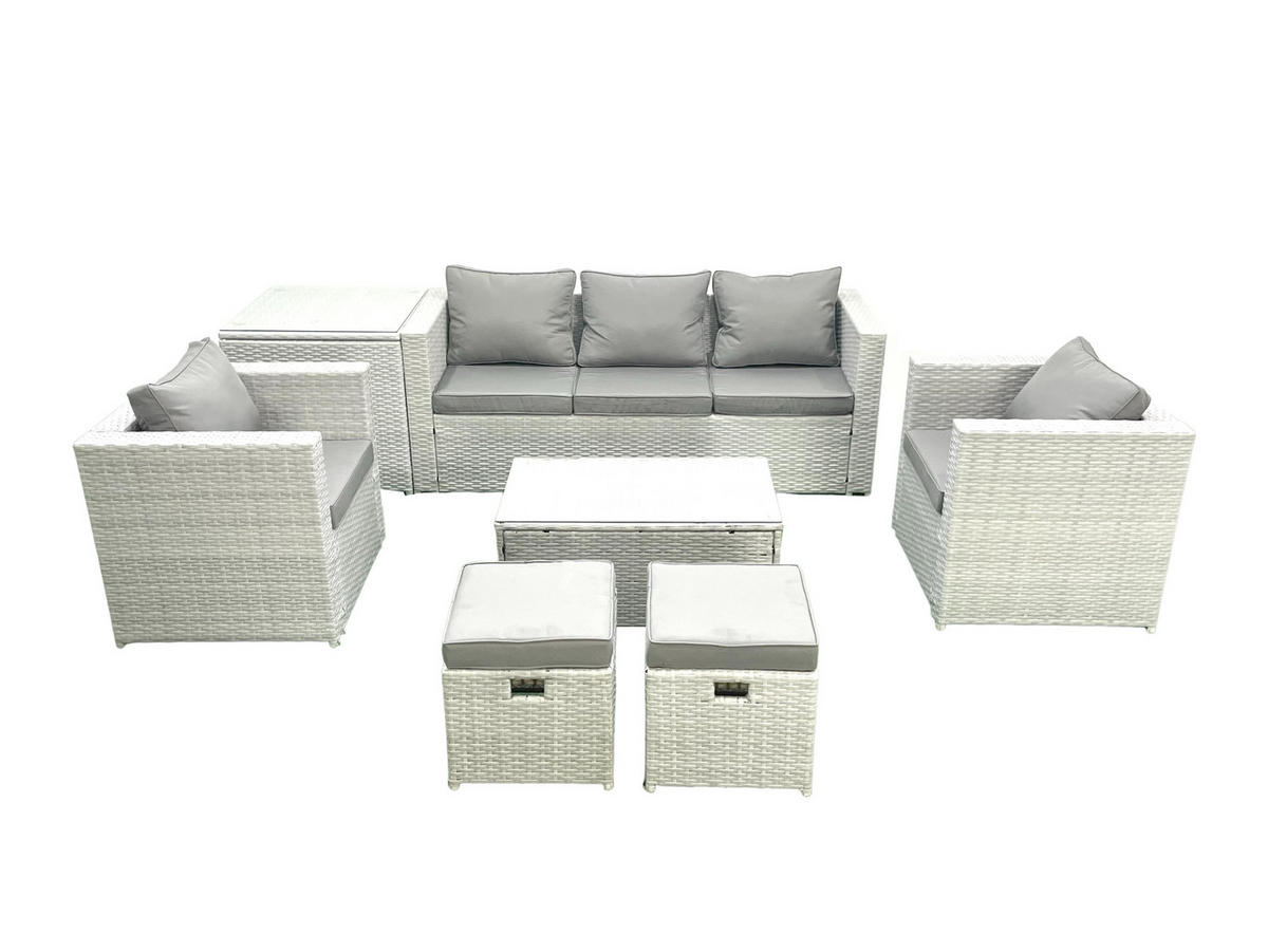 Fimous GARTENMÖBELSET mit 3-SITZER SOFA,COUCHTISCH Polyrattan Hellgrau-Mix 7-Sitzer