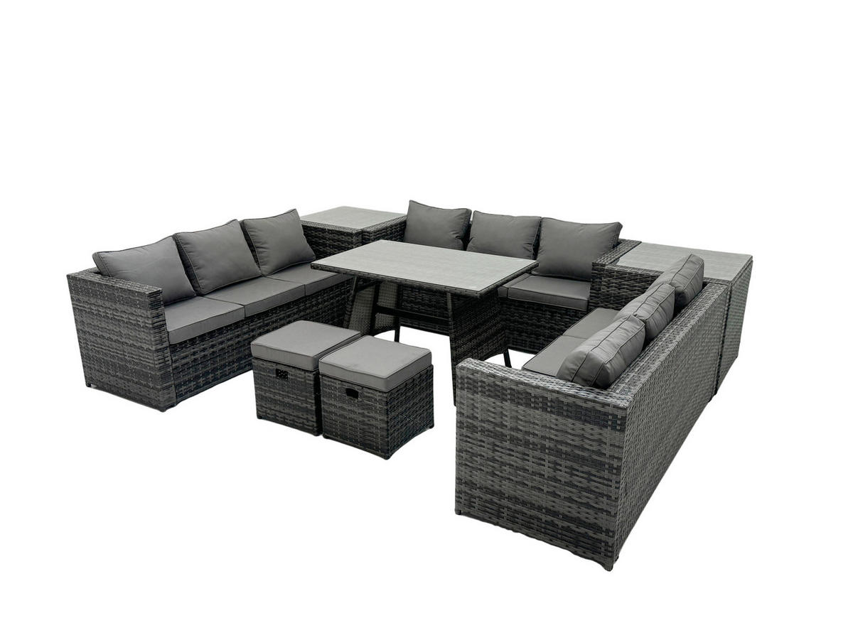 Fimous GARTENMÖBELSET mit Beistelltisch 11-Sitzer Grau