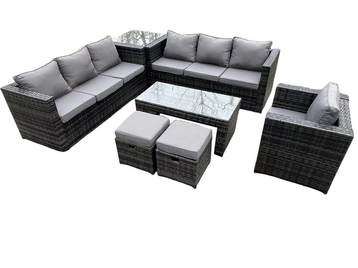 Fimous GARTENMÖBELSET mit Couchtisch Polyrattan 9-Sitzer