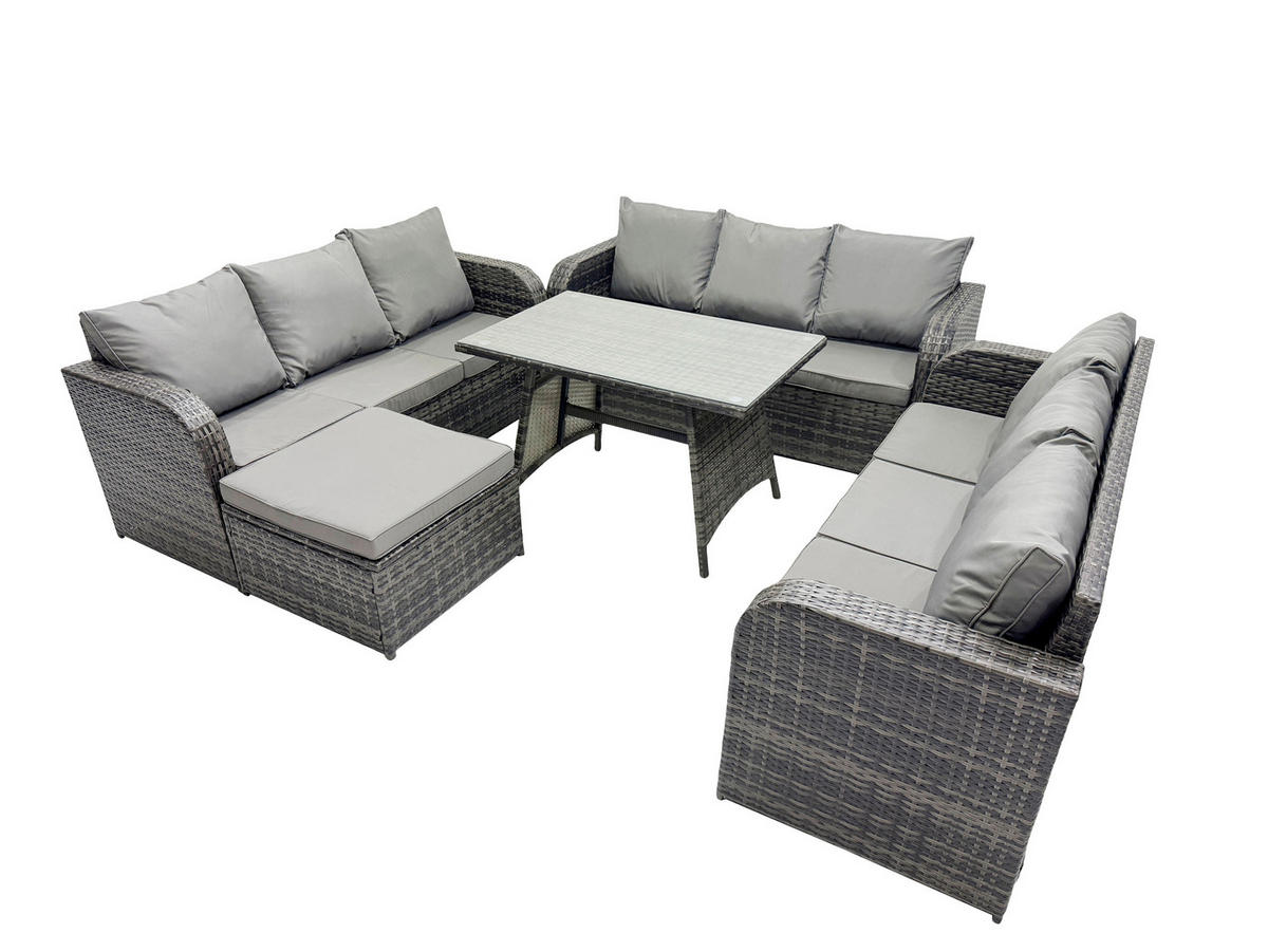 Fimous GARTENMÖBELSET mit ESSTISCH, 3-SITZER SOFA Polyrattan 10-Sitzer