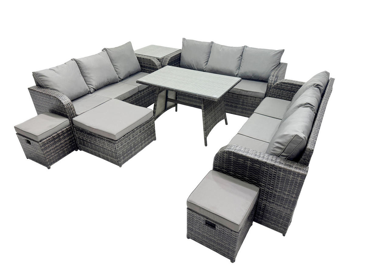 Fimous GARTENMÖBELSET mit ESSTISCH, 3-SITZER SOFA Polyrattan 12-Sitzer