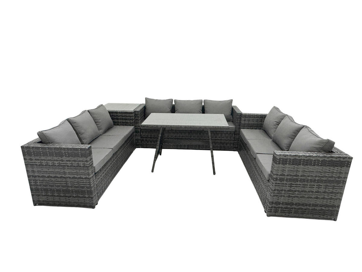 Fimous GARTENMÖBELSET mit Esstisch Beistelltisch 9-Sitzer Grau