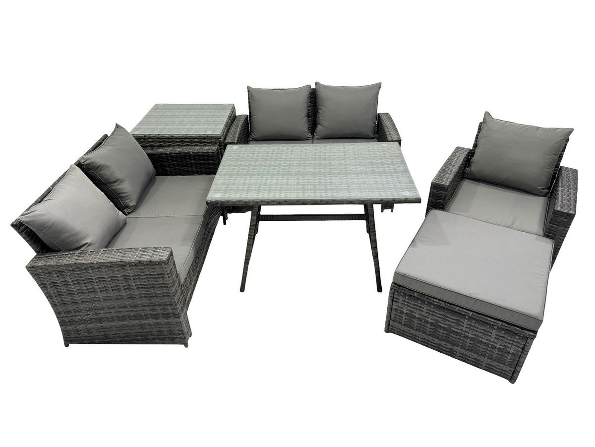 Fimous GARTENMÖBELSET mit ESSTISCH,HOCHLEHNER-SOFA Polyrattan Dunkelgrauer Mix 6-Sitzer