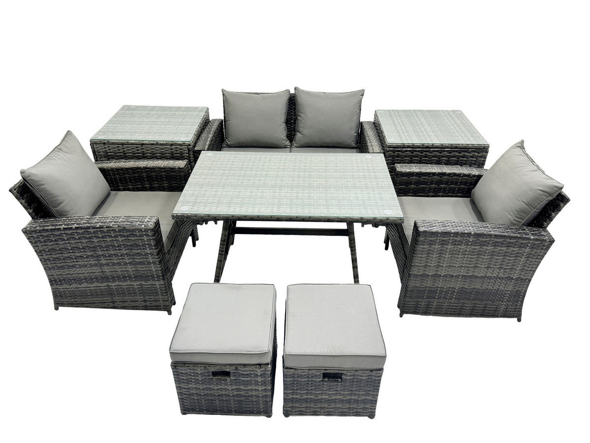 Fimous GARTENMÖBELSET mit ESSTISCH,HOCHLEHNER-SOFA Polyrattan Dunkelgrauer Mix 6-Sitzer