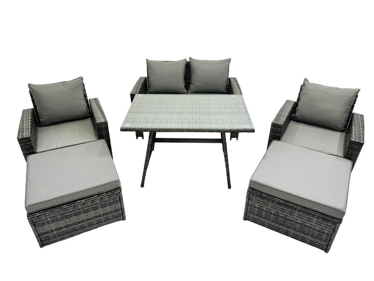 Fimous GARTENMÖBELSET mit ESSTISCH,HOCHLEHNER-SOFA Polyrattan Dunkelgrauer Mix 7-Sitzer