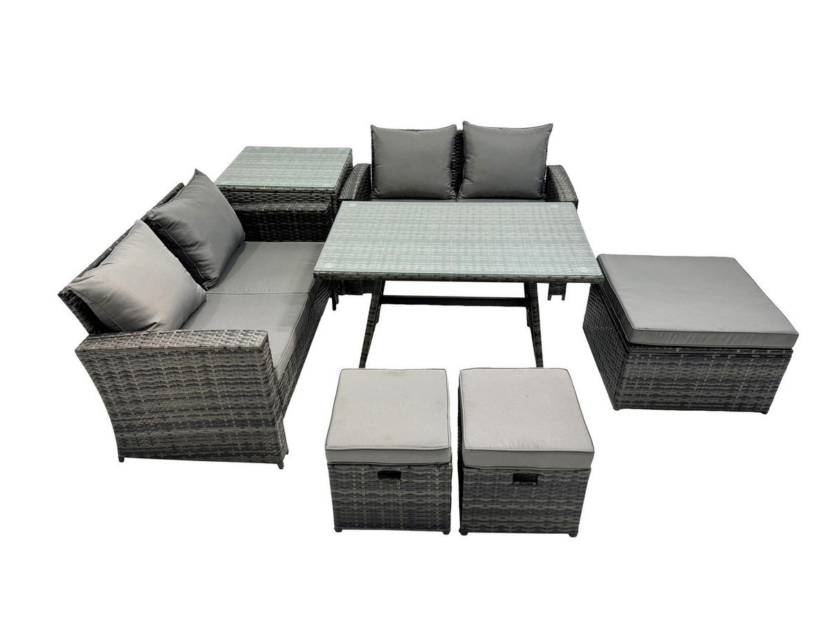 Fimous GARTENMÖBELSET mit ESSTISCH,HOCHLEHNER-SOFA Polyrattan Dunkelgrauer Mix 7-Sitzer