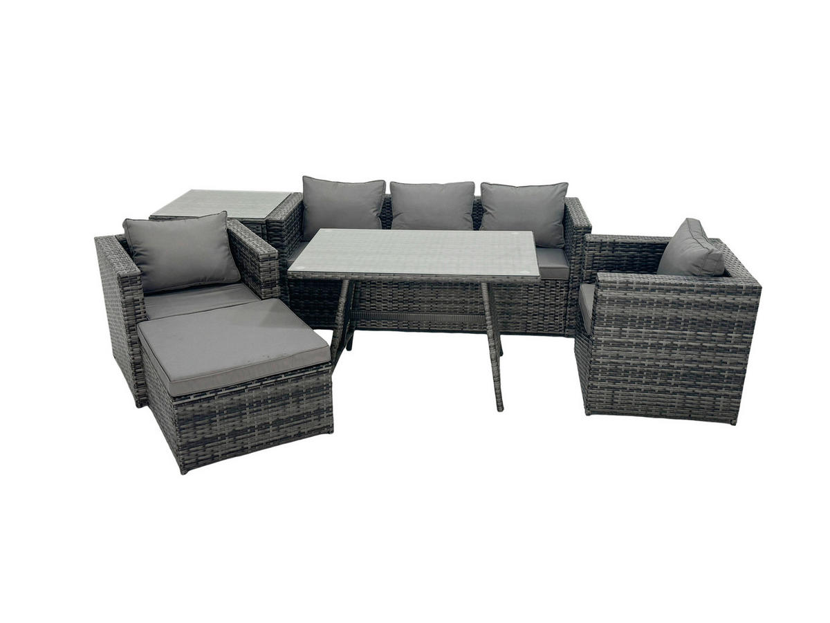 Fimous GARTENMÖBELSET mit Esstisch Hocker 6-Sitzer Grau