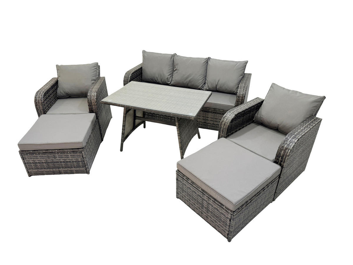 GARTENMÖBELSET mit ESSTISCH,SOFA Polyrattan 7-Sitzer - Dunkelgrau/Grau, Glas/Kunststoff - FimousFimous