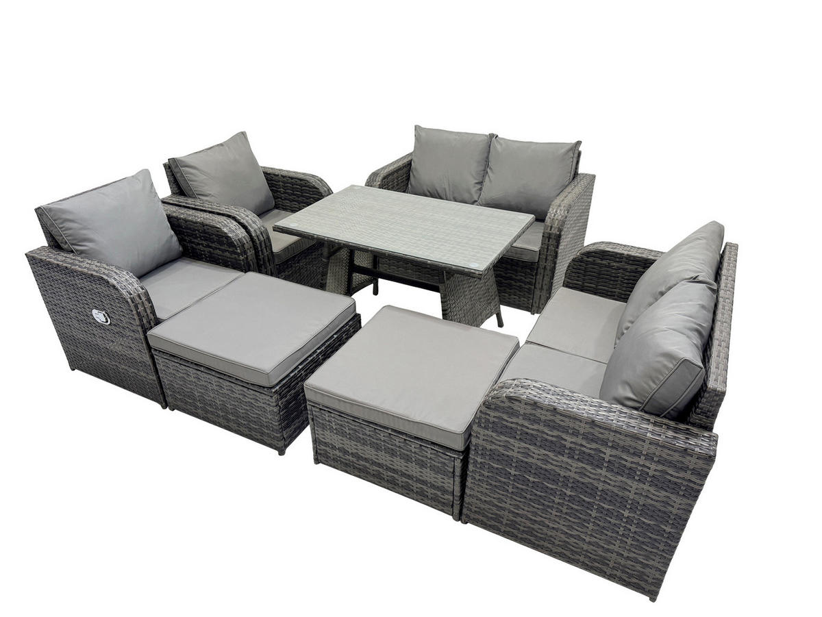 Fimous GARTENMÖBELSET mit ESSTISCH,SOFA Polyrattan 8-Sitzer
