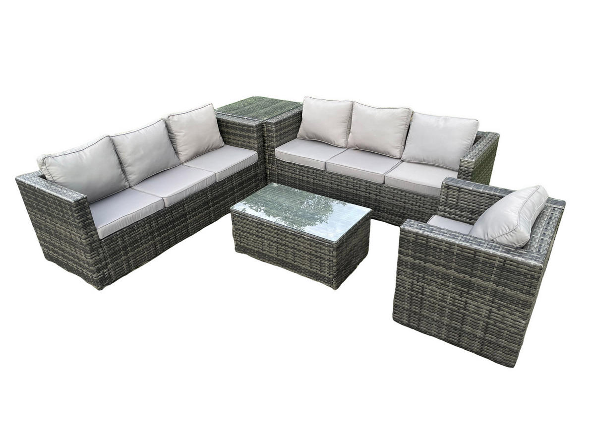 GARTENMÖBELSET Polyrattan 7-Sitzer - Dunkelgrau, Metall - FimousFimous