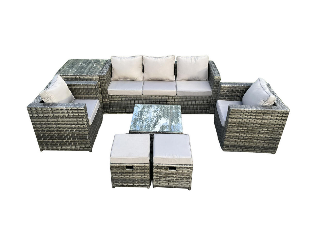 Fimous GARTENSET mit Beistelltisch Polyrattan 7-Sitzer