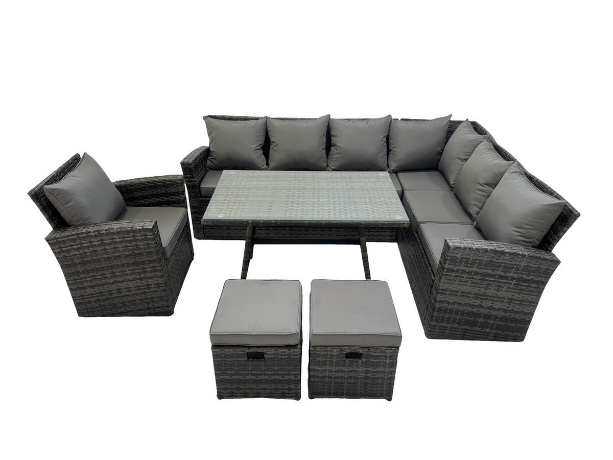 Fimous GARTENSET mit Esstisch Fußhocker Polyrattan 9-Sitzer